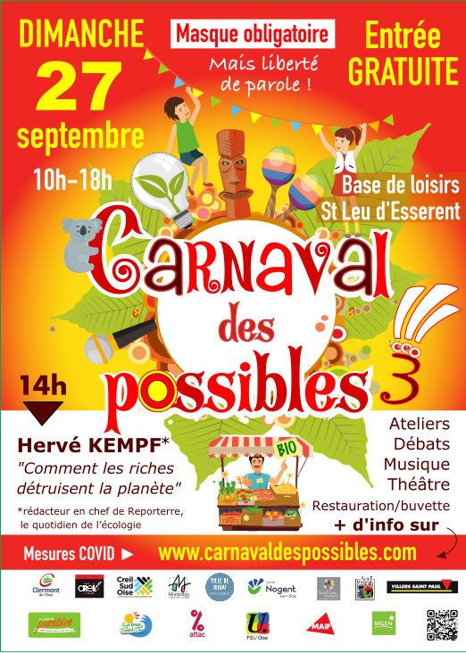 Le CARNAVAL DES POSSIBLES est un FESTIVAL GRATUIT sur les problèmes d’écologie, de climat, de justice sociale et de démocratie.
