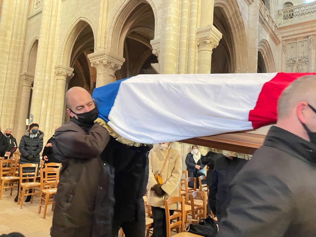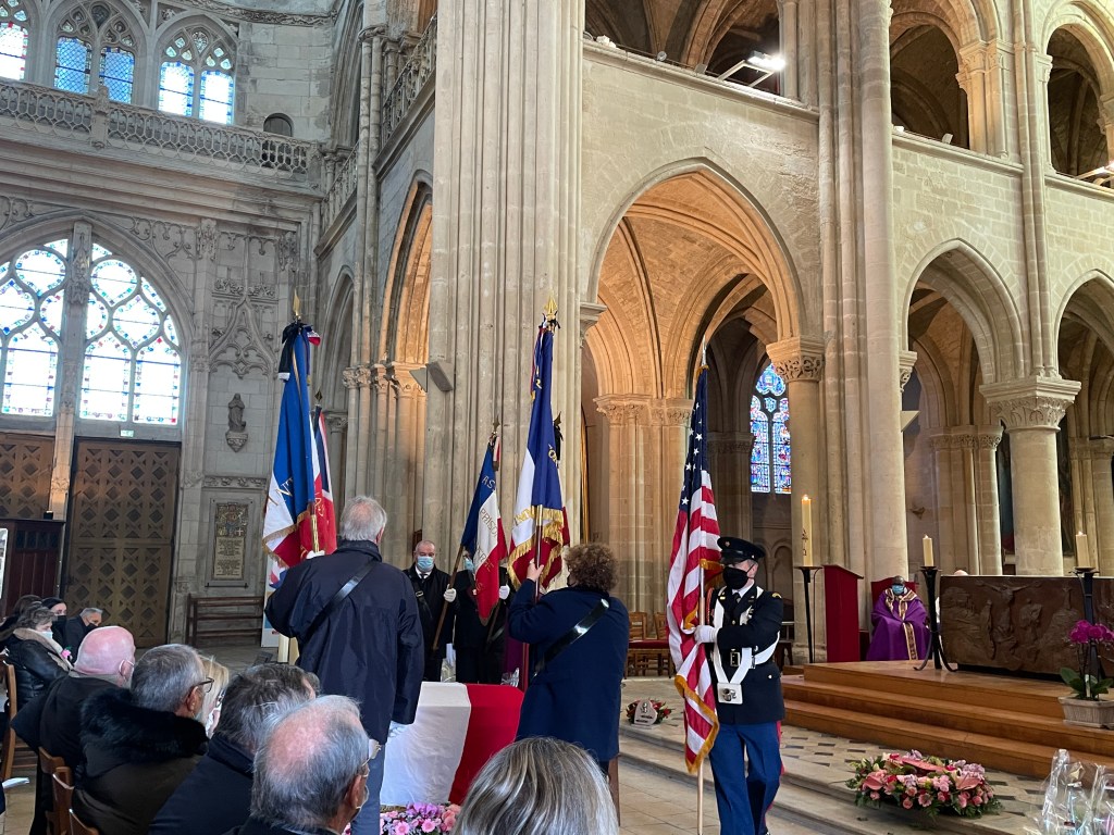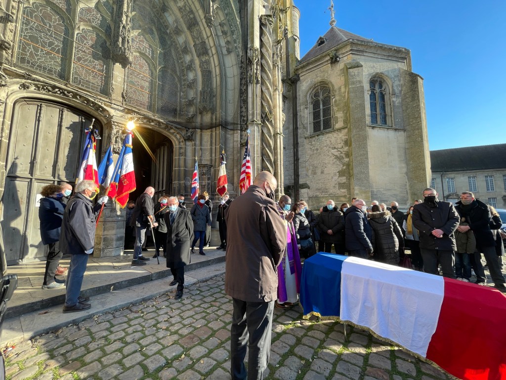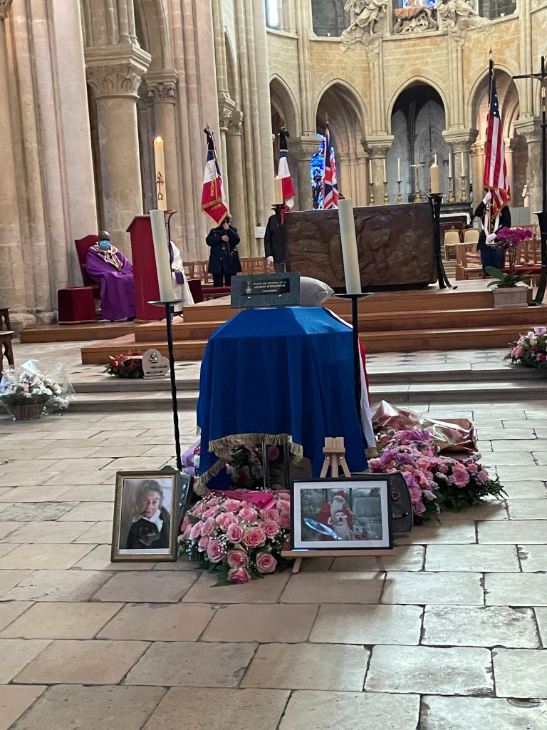 Six porte-drapeaux dont un britannique et un américain et beaucoup de fleurs, pour le dernier adieu à Jacqueline Leroy dont le cercueil était recouvert du drapeau français.