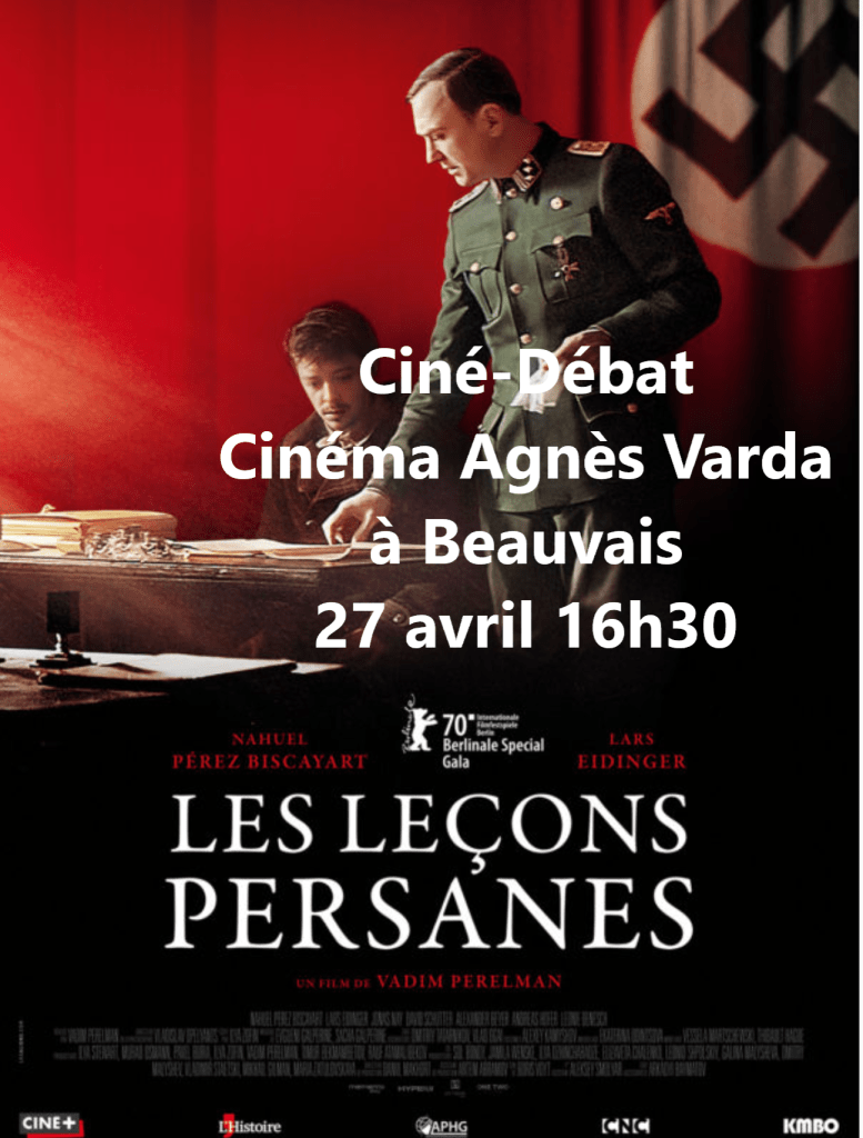 Mercredi 27 avril 16h30 au Cinéma Agnès Varda, 8, avenue de Champagne à Beauvais, projection et échanges : le film Les leçons persanes de Vadim Pérelman.