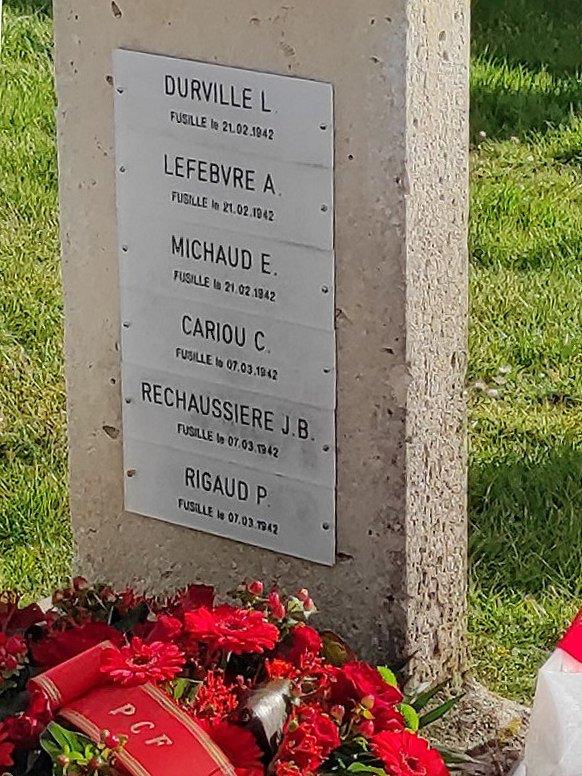 Corentin Cariou, 43 ans : ajusteur à la Société du gaz de Paris, syndicaliste, membre du comité central du Parti communiste, conseiller municipal de Paris, résistant, fusillé le 7 mars 1942, inhumé à Cuts