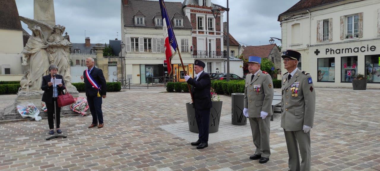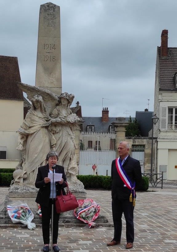 A Mouy, à l’invitation du Maire, c’est Hélène Boulanger, présidente de l’ANACR-Oise qui était présente; elle a déposé une gerbe de fleurs devant le Monument aux morts en hommage à tous les Résistants et a lu le texte suivant :