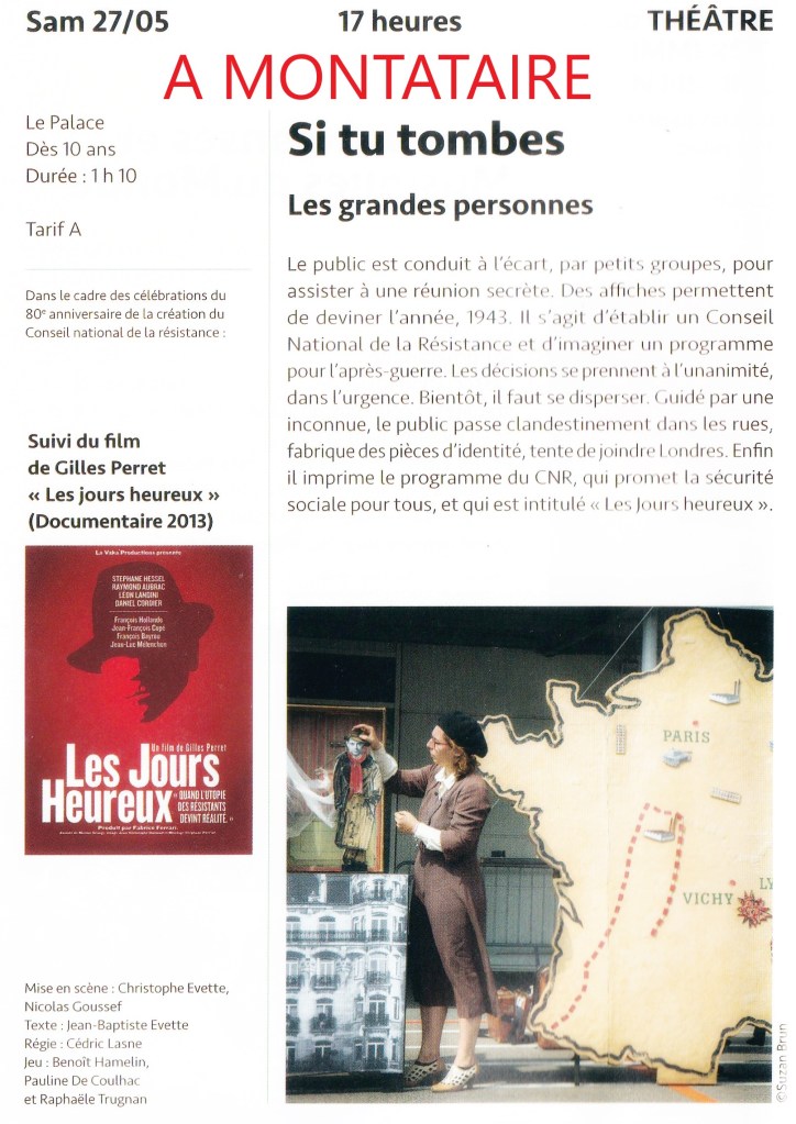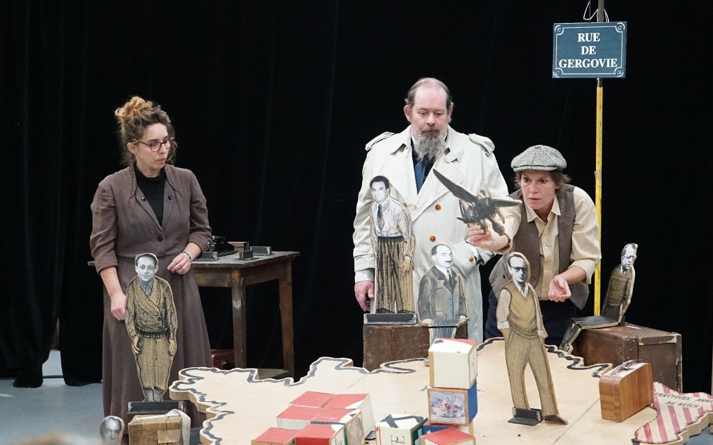 A l’ordre du jour, créer un conseil national de la Résistance. Les meubles et les personnages sont en carton. La discussion est vive parfois brutale ou drôle . Les décisions sont prises à l’unanimité dans l’urgence.