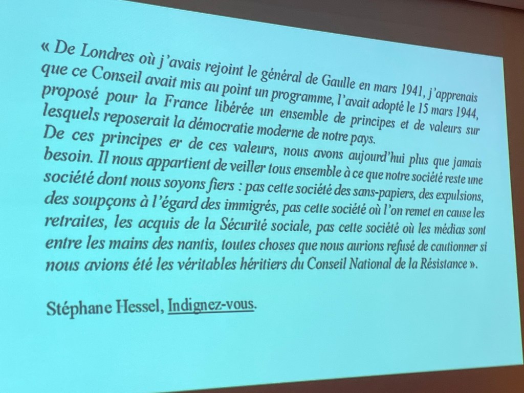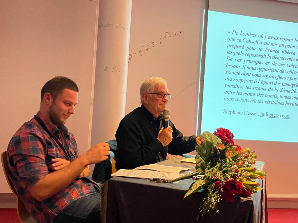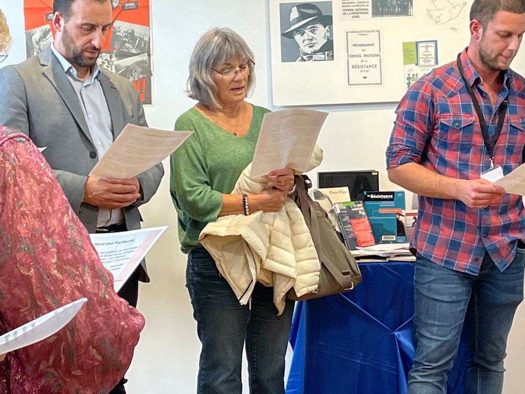 Le 30 septembre dernier, l’ANACR-Oise a tenu son assemblée générale ordinaire : l’occasion de revenir sur l’exercice 2022 mais aussi sur tout ce qui a été réalisé en 2023 et tout ce qui le sera en 2924 ! Car si 2023 a été l’année du 80ème anniversaire du Conseil National de la Résistance (CNR), 2024 sera l’année de l’adoption du programme du CNR Les Jours Heureux, du débarquement allié en Normandie puis en Provence et de l’entrée de Missak Manouchian avec sa femme Mélinée au Panthéon ! Pour lire le compte-rendu de l’assemblée générale : Merci de cliquer ICI. Au cours de la réunion, Denise Decamps-Dubos âgée de 92 ans et accompagnée par sa fille Marianne a expliqué comment elle témoigne dans de nombreux collèges et lycées sur la Résistance de son père Marcel Dubos. Ce qu’elle fait pour apporter cette mémoire vivante aux plus jeunes et la façon dont elle en a parlé ont ému toute l’assistance ! Elle a été très applaudie par tous les présents.