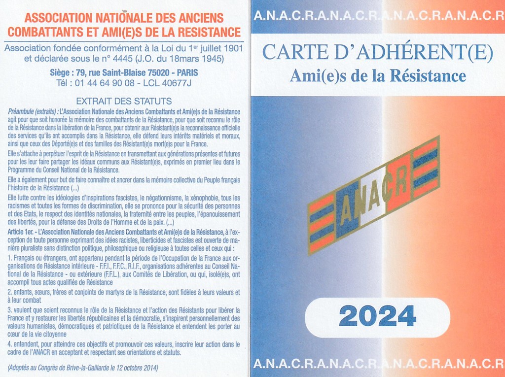 Le montant de la cotisation pour 2024 est de 25€ dont une partie est attribuée au Comité local et au Comité départemental. L’abonnement au Journal de la Résistance est optionnel mais ce journal dont une grande partie est consacrée à des dossiers très approfondis sur l’histoire de la Résistance et de la Seconde Guerre mondiale est vraiment intéressant !